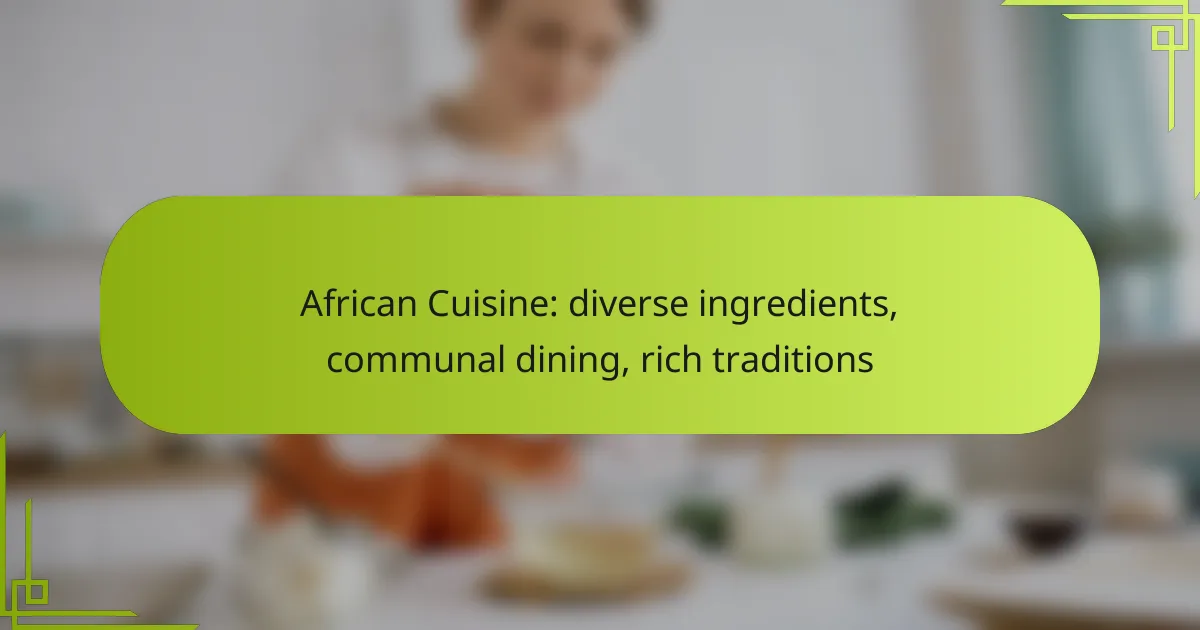 African cuisine is a vibrant tapestry of flavors and ingredients, shaped by the continent’s diverse cultures and climates. With staples like maize and cassava, alongside an array of spices and fresh produce, each region offers unique dishes that celebrate communal dining and rich culinary traditions.